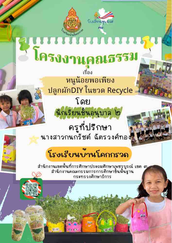 โครงงานคุณธรรม เรื่อง หนูน้อยพอเพียง ปลูกผักDIY ในขวดRecycle